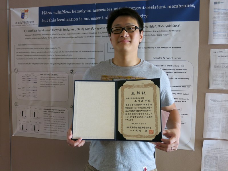 大学院生 山﨑 獣獣医学会微生物分科会若手奨励賞 受賞